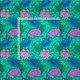 Gewebe in einem Vintagen William Morris, Kunst Nouveau, Blumendruck der stylized Chrysanthemen, digital erhöht und, in den Schatten des weichen cerulean Blaus des Aqua und des Türkises und im Veilchen/im Lavendel, auf einem aquamarinen/Pfauhintergrund gefärbt