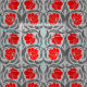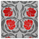 Gewebe in einem Vintagen Textilmuster Williams Morris der stylized Pimpernel-Blumen und des Blätter - Blumen in einer Steigung der Dunkelheit zum hellen Rot, mit Graphitgrauem/grauem Blätter, auf einem hellen Hintergrund des silbernen Graus
