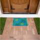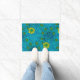 Fußmatte in einem Vintagen William Morris, Kunst Nouveau, Ringelblumendamastdruck des Blätter und der Blumen, digital erhöhte und färbte, in den Schatten des Türkises, des Aqua und des Kobaltblaus, betont mit gelbem und Limonem Grün, auf einem dunklen Marineblauhintergrund