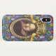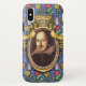 The Bard - Das Originalwerk von ZoeSPEAK auf diesem iPhone X Case ist ein Portrait des Autors William Shakespeare. Das Portrait ist in einem verzierten ovalen Goldrahmen mit Bändern und einer Krone oben. Das blaue Hintergrundbild ist mit Schlössern, Königskronen und gelben und roten Blume geschmückt und erinnert an Romantik, Tragödie und Komödie seiner Stücke und Gedichte.