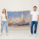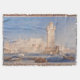 Rhodes. Joseph Mallord William Turner (1775 - 1851). Eine schöne Jahreszeit in Rosa und Blau. Im Vordergrund befinden sich Boote und Schiffe in der Bucht in der Nähe der Stadtmauer, im mittleren Bereich befindet sich ein hoher Turm. Im Hintergrund befindet sich eine Stadt mit Steinhäusern. Reproduktion berühmter Kunstbilder im öffentlichen Bereich.