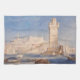 Rhodes. Joseph Mallord William Turner (1775 - 1851). Eine schöne Jahreszeit in Rosa und Blau. Im Vordergrund befinden sich Boote und Schiffe in der Bucht in der Nähe der Stadtmauer, im mittleren Bereich befindet sich ein hoher Turm. Im Hintergrund befindet sich eine Stadt mit Steinhäusern. Reproduktion berühmter Kunstbilder im öffentlichen Bereich.