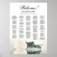 Diese schöne Hochzeitssitzkarte zeigt eine einsame weiße, elfenbeinfarbene oder cremefarbene Rose, die sich sanft auf der Seite ausruht und in einem ruhigen Wasserbecken reflektiert. Der Titel lautet "Willkommen - bitte finden Sie Ihren Tisch" mit den Namen des Paares und dem unten stehenden Hochzeitstermin. Das Diagramm bietet Platz für bis zu 200 Namen, die alphabetisch geordnet sind, um die Navigation Ihrer Gäste mühelos zu gestalten. Mit seiner geschmackvollen und raffinierten Ästhetik strahlt dieses Design Eleganz, Romantik, Eleganz und eine Touch von Chic aus und verleiht Ihrem Hochzeitsfest eine charmante Atmosphäre.
