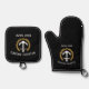 Ein phantastisches Ofen Mitt & Pot Etui Set mit eigens dafür entworfenen nautischen Bootankern, goldenen Lorbeer-Blätter und einem goldenen Stern mit "Welcome Abard" und Ihrem personalisierten Namen, Bootnamen oder anderen Wunschtexten. Dieses Design ist in weißen und goldenen Farben auf einem Regal schwarz Farbe oder einfach bearbeiten Sie das Design, um die Hintergrundfarbe zu ändern, um Ihre Einrichtung. Kaufen Sie das Set oder bei Bedarf einzeln. Macht ein großartiges Geschenk.