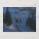 In dieser fantasieähnlichen Szene führt in einer Winternacht ein eisiger Weg zwischen Schneeflocken über den Hügel und über den Fluss zu einer einladenden Hütte mit Kerzen im Fenster. Der Weg und die Steine über das Wasser leuchten durch wärmstens leuchtende Laternen, und ein Feuer am Ende des Weges lässt Funken in die kalte Nachtluft.