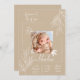 Baby Birth Ankündigungskarte. Babyname, Geburtstag und Geburtsausweis zum Versenden an Familie und Freunde. Schlichtes Design für Junge oder Mädchen. Passen Sie den Namen und die Daten an. "Willkommen in der Welt" Drehbuch Detail mit Blattwerk, Blatt Blätter filigrane. niedlich modernes Design für 2022.