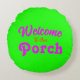 Willkommen auf unserer Veranda / immer / heiß grün Rundes Kissen