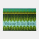 Stilvolle, lebendige und kühn Limone und dunkelgrüne Patio-Matte, Begrüßung zu unserem Zuhause-Text kann auf jede Nachricht geändert werden, oder Text ist abnehmbar. Der aquamarine Hintergrund kann auf eine beliebige Farbe umgeschaltet werden, um dem Dekorationsstil gerecht zu werden.