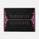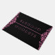 Eleganter schwarzer Damaskashintergrund mit rosa Blumenrahmen auf verlassen und rechter und zinnrosa Linien-Dezider für individualisierbare Begrüßung und Abschied. Einfach minimalistischer Stil.