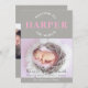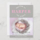 Willkommen bei der Geburtsankündigung des rosa und grauen Fotos der Welt