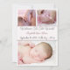 Willkommen zur World Baby Announcement CardSenden Sie diese schöne Karte an Freunde und Familie, die Ihre neue Ankunft ankündigen. 3 Fotos mit Ankündigung und Details auf einem hellrosa Banner. Die Rückseite ist hellrosa mit kleinem Rahmen, und "Liebe" und die Namen der Eltern.