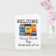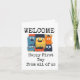 Willkommen, glücklicher erster Tag, von uns allen, niedliche, lustige Cartoon-Monster.