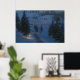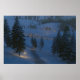 In dieser fantasieähnlichen Szene führt in einer Winternacht ein eisiger Weg zwischen Schneeflocken über den Hügel und über den Fluss zu einer einladenden Hütte mit Kerzen im Fenster. Der Weg und die Steine über das Wasser leuchten durch wärmstens leuchtende Laternen, und ein Feuer am Ende des Weges lässt Funken in die kalte Nachtluft.
