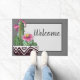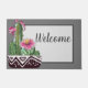 Modernes Design mit Aquarellkaktortrio mit rosa Blüten und "Welcome" zentriertem Text auf grauem Hintergrund