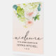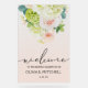 Grosses Acrylzeichen mit dem Wort "Willkommen" und Ihren Details, mit eleganten Aquarellfarben, weißen und grünen Hydrangeas, rosa und cremefarbenen Rose, Gänseblümchen und Grün auf einem hellrosa Hintergrund, eine schöne Art, Gäste zu Ihrer Hochzeit einzuladen und zu begrüßen. ÄNDERN SIE DIE GRÖSSE, um sie an Ihre Veranstaltung anzupassen. MEHR Zeichen und MATCHING Artikel in unserer Sammlung.