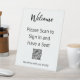 Willkommen Bitte scannen Sie QR-Code, um sich anzu Sockelschild