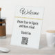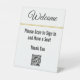 Herzlich willkommen bei Ihren Besuchern mit diesem Tischschild. Dieses weiße Zeichen hat schwarzen Bildschirmtext. Außerdem kann der Anzeigetext bearbeitet werden, um den gewünschten Text anzuzeigen. Text anzeigen: Willkommen Bitte scannen Sie sich ein und haben einen Platz Vielen Dank. Denken Sie daran, Ihre Website-URL einzugeben, um den korrekten QR-Code anzuzeigen.