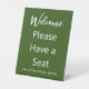 Willkommen Bitte setzen Sie sich mit dunkelgrünem Sockelschild