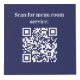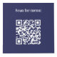 Für Hotelzimmer, Restauranttische, Mietobjekte. Personalisieren und hinzufügen Sie Ihr Firmenlogo und Platz für 4 QR Codes. Navy blauer Hintergrund, weißer Text.