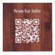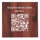 Für Hotelzimmer, Restauranttische, Mietkabinen. Personalisieren und hinzufügen Sie Ihr Firmenlogo und Platz für 4 QR Codes. Brauner, rustikaler Holzdruck als Hintergrund, weißer Text.