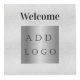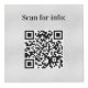 Für Hotelzimmer, Restauranttische, Mietobjekte. Personalisieren und hinzufügen Sie Ihr Firmenlogo und Platz für 4 QR Codes. Ein Imitat silber aussehender Hintergrund, schwarzer Text.