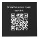 Für Hotelzimmer, Restauranttische, Mietobjekte. Personalisieren und hinzufügen Sie Ihr Firmenlogo und Platz für 4 QR Codes. Schwarzer Hintergrund, weißer Text. Sie können Ihre Markenfarbe im Designwerkzeug hinzufügen.