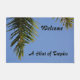 Einfach einzigartiges Design an Palmenfronten gegenüber einem schönen klaren blauen Himmel. Herzlich willkommen in den Tropen. Personalisieren Sie Ihre Daten mit dem Familiennamen. Dieses Bild ist eine Originalfotografie von JLW_FOTOGRAFIE