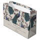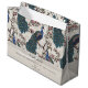 Dieses elegante Welcome Ivory Floral Peacocks Large Gift Bag besticht durch von Hand gezeichnet blaue und aquamarine Pfauen, die auf den Ästen der Magnolia-Bäume in der Blüte in Chinoiserie-Stil verziert sind. Alles vor einem eleganten Elfenbeinhintergrund mit blumengeschmückten Silhouetten. Personalisieren Sie Ihre eigene Überschrift (Willkommen, Geburtstag glücklich, Geburtstag, Geburtstag glücklich, Muttertag glücklich, etc.), eine persönliche Nachricht, Ihren Namen und Ihr Datum.