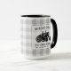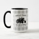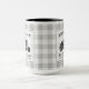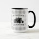 Eine wunderschöne, rustikale Tasse mit zwei Tönen Kaffee, mit einem Kunstwerk einer Vintagen Traktorenmaschine mit dem Text "Welcome to our farm" und Ihrem Familiennamen, festem Datum oder anderen gewünschten Text. Dieses einzigartige Design Erholungen auf einem karierten Druck in Grau und Weiß. Um mehr Designs wie dieses zu sehen, besuchen Sie bitte meinen Shop hier unter "Zazzle.com/Rustic_Charm". Danke.