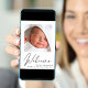Eine einfache und niedliche geschlechtsneutrale Geburtsankündigung. Die Vorderseite zeigt das Foto Ihres Neugeborenen, den vollständigen Namen, das Ankunftsdatum und die Geburtsdaten sowie "Willkommen" in einem stilvollen Schrift. Auf der Rückseite der Karte können Sie drei zusätzliche Fotos und Eltern- und Geschwisternamen hinzufügen, und ein Dankeschön, Besuchen oder eine andere Nachricht.