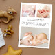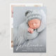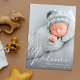 Eine einfache Geburtsankündigung mit dem Foto Ihres Neugeborenen mit einem Overlay von "Welcome" in einem stilvollen weißen Drehbuch. Geben Sie den Namen, das Geburtsdatum und die Geburtsdaten Ihres Babys ein. Fügen Sie auf der Rückseite drei zusätzliche Bilder und eine personalisierte Nachricht hinzu.