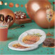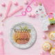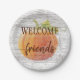 Willkommen Freunde Pumpkin auf witterten Holzplank Pappteller