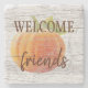 Willkommen Freunde Pumpkin auf witterten Holzplank Steinuntersetzer