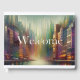 Eine friedliche Vorstadt mit Wasserstraßen und der bunten Skyline der Stadt jenseits