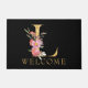 WILLKOMMEN, Gold Monogram L mit rosa Florals, schw Fußmatte