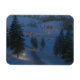 In dieser fantasieähnlichen Szene führt in einer Winternacht ein eisiger Weg zwischen Schneeflocken über den Hügel und über den Fluss zu einer einladenden Hütte mit Kerzen im Fenster. Der Weg und die Steine über das Wasser leuchten durch wärmstens leuchtende Laternen, und ein Feuer am Ende des Weges lässt Funken in die kalte Nachtluft.