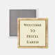 Welcome To Hotel Earth Magnet ist ein Design auf einem goldenen Hintergrund mit Text. Dieses motivierend Sprichwort wurde in Meditation empfangen. Der Text ist ©2019 Patricia Fogelsonger. Dieses Design ist Teil der "Redewendungen by Patricia Serie".