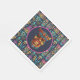 Eine helle Tiki Maske Luau Party Napkin Tafel in Blues und Pinks für ein hawaiianisches Luau
