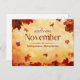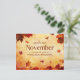 Feiern Sie den gemütlichen Charme des Herbstes mit dieser anschaulichen roten und orangefarbenen Postkarte. Mit seinen natürlichen Herbstelementen ist es perfekt, um den November zu empfangen, saisonale Grüße zu verschicken oder mit Freunden und Familie eine warme Note zu teilen.