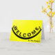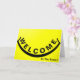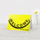 Das ist rustikal gelber Hintergrund mit schwarzem Lächeln Willkommenskarte. Willkommen Ihre neuen Mitarbeiter in Ihrem Team und lassen sie sich mit dieser fröhlichen und stilvollen Muster Business Mitarbeiter Grußkarte schätzen. Diese Willkommenskarte für neue Mitarbeiter oder Kunden im Unternehmen.