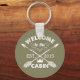 Beginnen Sie Ihren Urlaub mit diesem rustikal-schicken Schlüsselanhänger. Design-Features "Willkommen in der Hütte" in sandgestrahltem schwarzem Text mit einer Seilillustrierung und zwei gekreuzten Pfeilen. Anpassen an das Jahr, in dem Sie das Leben im Wald begonnen haben. Gutes Geschenk für die Gastgeberin oder Hauswärmespiele!