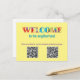 Willkommen neue Freunde und Nachbarn mit dieser hellen Postkarte mit QR-Codes, die mit Ihren lokalen Facebook und Instagram Gruppen verbunden sind. QR Codes können Links zu einer beliebigen URL Ihrer Wahl haben.