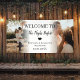 Begrüßen Sie stilvoll die Hochzeitsfeier mit diesem eleganten Probe Dinner Party-Banner mit zwei Fotos Collage und individuellem in der Mitte. Personalisieren Sie es mit den Namen des Paares, dem Party und einer herzlichen Nachricht. Ideal für Innen- oder Außenfeiern, Foto-ops oder Einstiegsdekor.