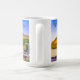 ZoeSPEAK's Reiseandenken umfasst einige originelle Fotografien von Begrüßungszentren in den US-Staaten, die wir besucht haben. Der landschaftliche Blick auf diese Tasse zeigt den US-Staat Tennessee und sein Welcome Center mit Blick auf die sonnigen Berge und den blauen Himmel. Die Pkw und Lkw der Reisenden stehen am Hang, und das Zentrum wird durch ein Schild "Welcome to Tennessee" erreicht.