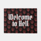 Willkommen in Satans Gabel-Türmatte. Fügen Sie Ihre eigene Nachricht, Familienname, Monogramm, Nachname oder lustiges Zitat hinzu. Coole Geschenkidee für neue Zuhause / Hauswärmung oder Verlobung / Jubiläum Party. Vorlage für personalisierte Türzeichenmuster Erstellen Sie Ihre eigene kleine oder große Eintrittsmatte / Teppich für Eingangstür / Eingang oder Halle / Veranstaltungsort. Wohngestaltung / Dekoration für Ihr Haus individuell.