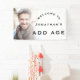 Willkommen Männchen jedes Alters Geburtstagsparty Foto Overlay. Minimalistischer Stil, ersetzen Sie einfach das Beispiel-Foto mit Ihrer eigenen hohen Auflösung und personalisieren Sie den Text auf Ihre Details.