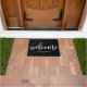 Diese Fußmatte kennzeichnet das Wort "Willkommen" in einem modernen weißen Skript mit optionalem Namen unten. Hintergrundfarbe kann durch das Vorwählen einer Farbe von der Palette unter Verwendung des Kundenbezogenheitswerkzeugs geändert werden, oder Sie können Ihren eigenen Hexecode eingeben.