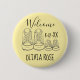 Button-Design zeigt eine originelle Marker-Abbildung eines Babyschuhpaares neben einem großen Schuhpaar, mit WELCOME in einem hübschen Schriftart, auf einem gelben Hintergrund. Persönlich gestalten Sie Ihre Babydusche oder Taufe mit Ihren Informationen. Diese Babyschuh-Illustration ist auch auf anderen Produkten erhältlich, einschließlich der Koordination von Party-Produkten und Dekoration. Sehen Sie nicht, wonach Sie suchen? Brauchen Sie Hilfe bei der Anpassung? Kontaktieren Sie Rebecca, um etwas für Sie entworfen zu haben.