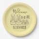 WILLKOMMEN Neue Anreise Kinderschuhe Dusche gelb Pappteller