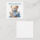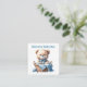 Niedlicher Junge Teddy Bär in einem Korb Postkarte. Willkommen beim neuen Baby. Geburtsankündigungskarte.